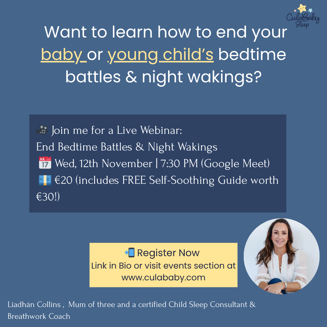 A practical sleep workshop with tips and strategies to help your baby or toddler settle easier, sleep longer, and restore calm at bedtime. 💛